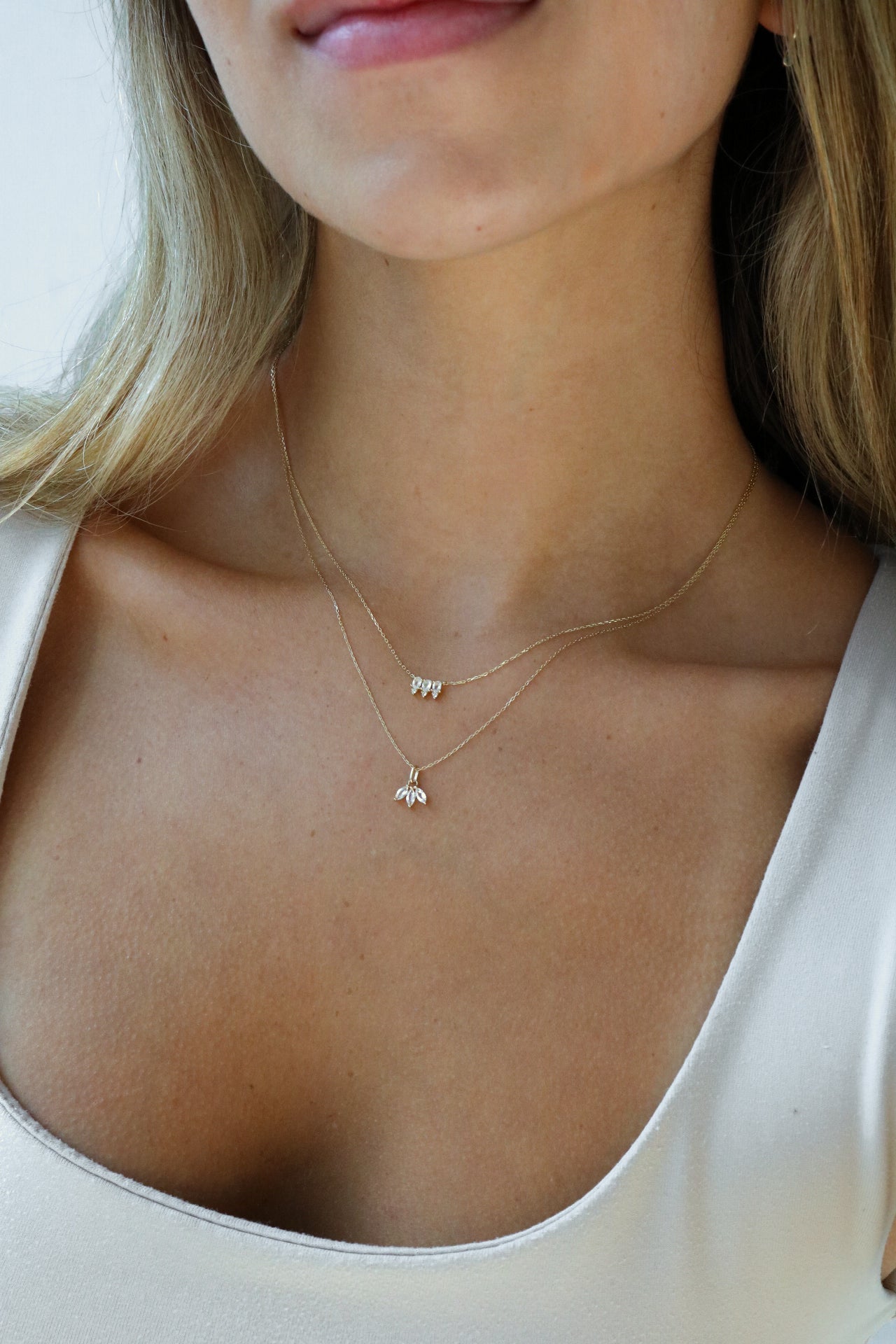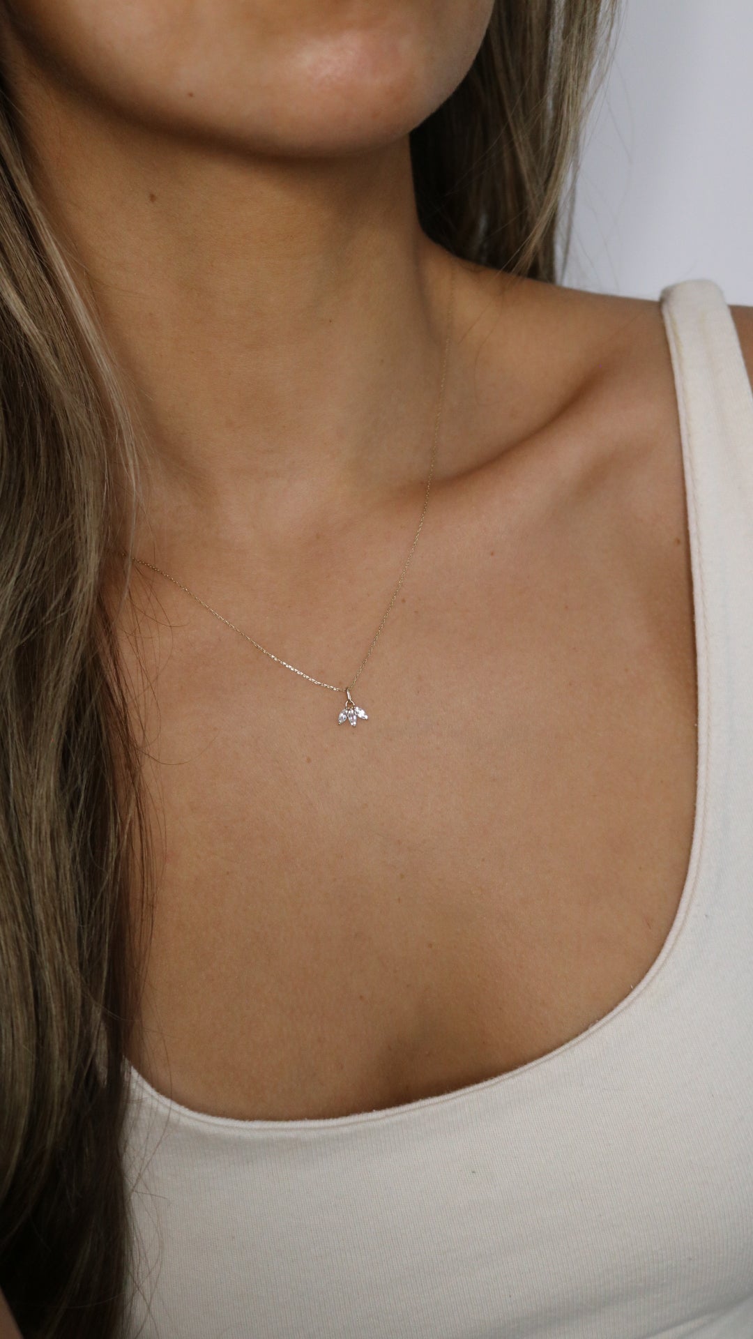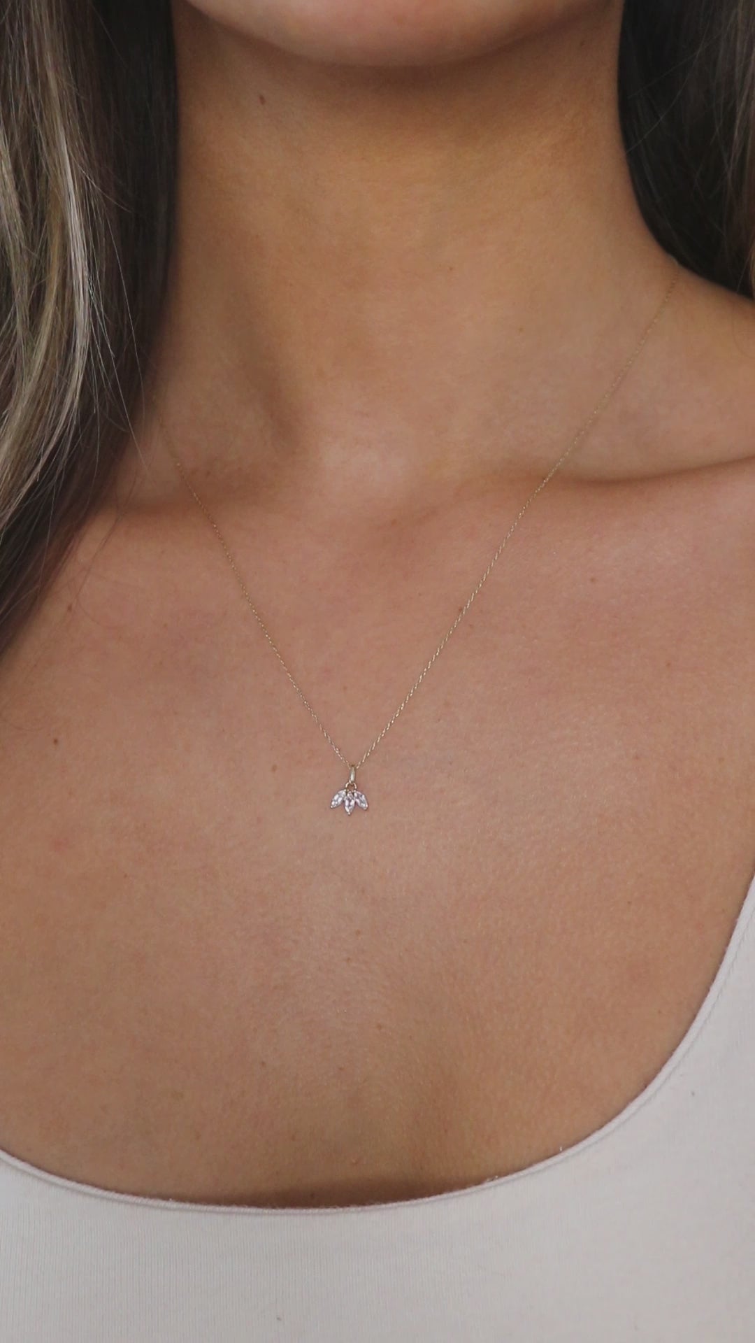 This dainty 14k gold Alexia White Topaz Necklace is quite stunning and elegant. This triple marquise white topaz cluster gleams and shines brilliantly in the light. Perfect for stacking and daily wear.
