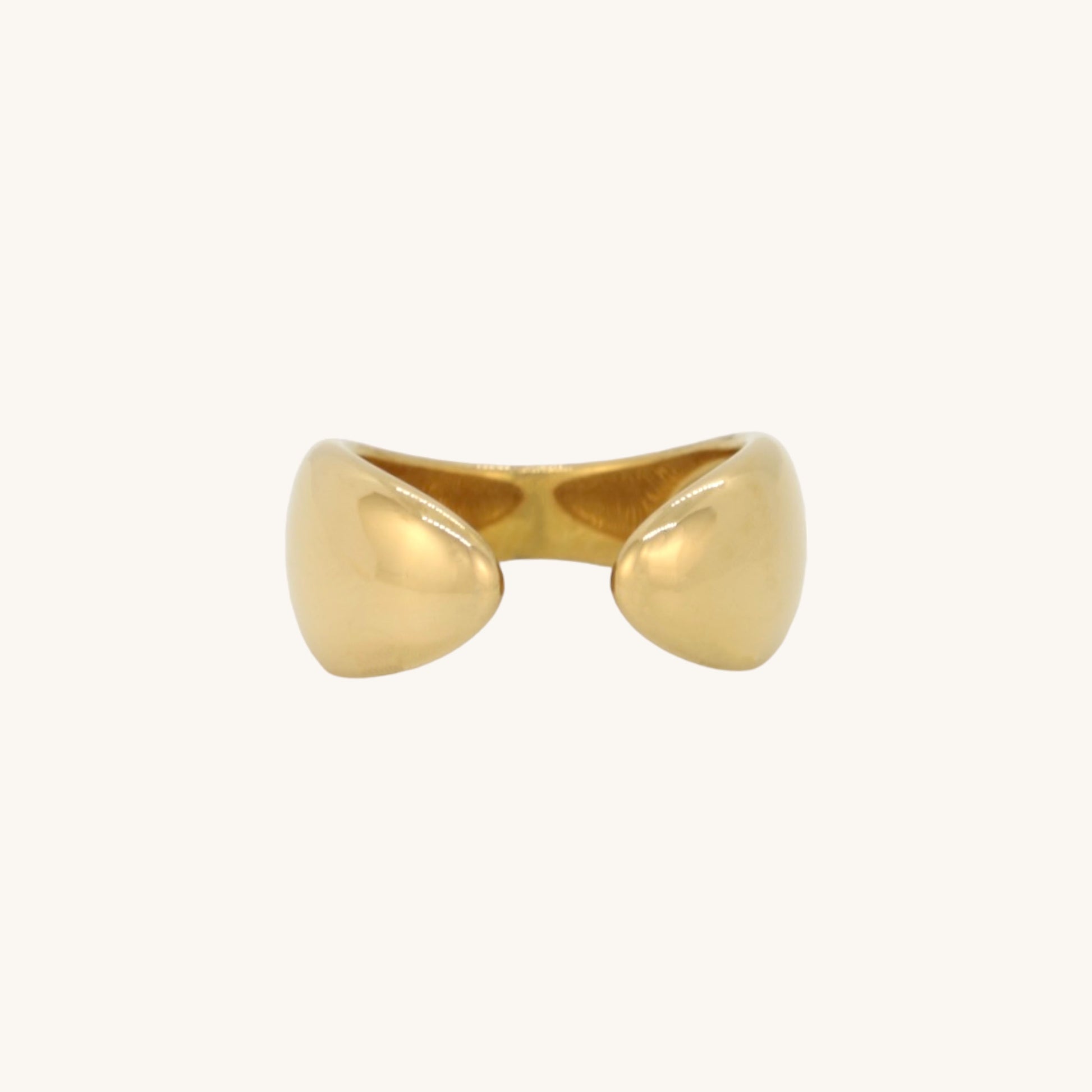 You'll love this thick gold band ring crafted with 18k gold for its chic and sophisticated edge. Its open faced design gives it a unique style that sets it apart.